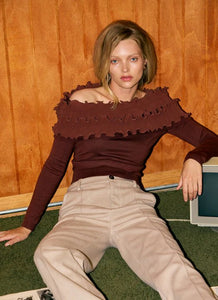 Rivir Knit, Micro Pleated Ruffle Off Shoulder Sweater - Fall '26 Collection