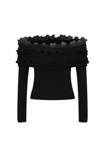 Rivir Knit, Micro Pleated Ruffle Off Shoulder Sweater - Fall '26 Collection